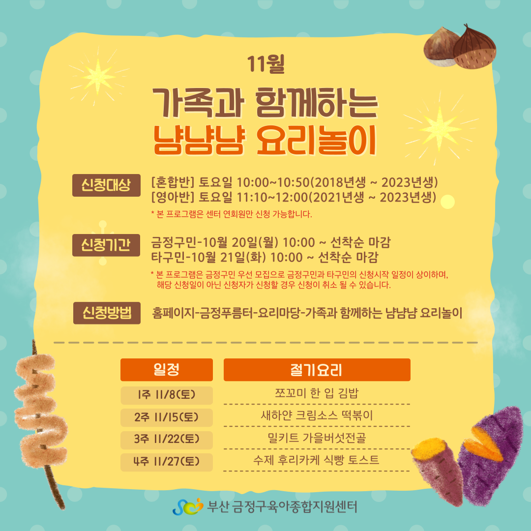 11월 가족과 함께하는 냠냠냠 요리놀이 1회차: 혼합반 (2019년생~2023년생)