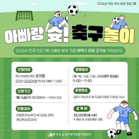 2026년 2월 부모-자녀 참여 프로그램 「아빠랑 슛! 축구놀이」 참여자 모집