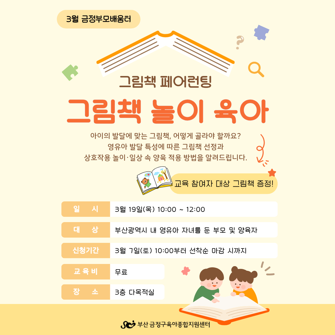 2026년 3월 금정부모배움터 「그림책 놀이 육아」 신청 안내