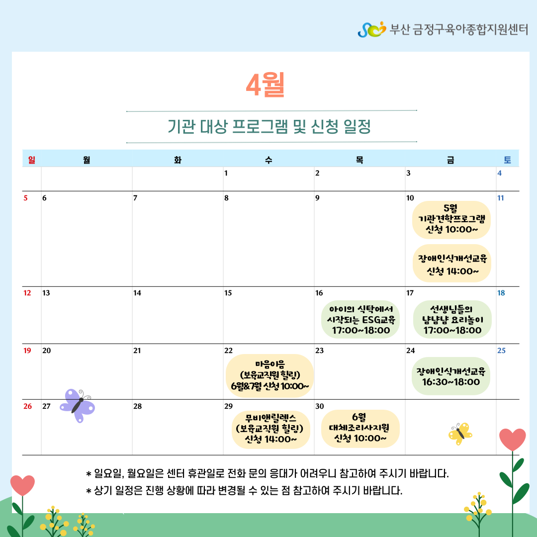 4월 기관 대상 프로그램 및 신청일정