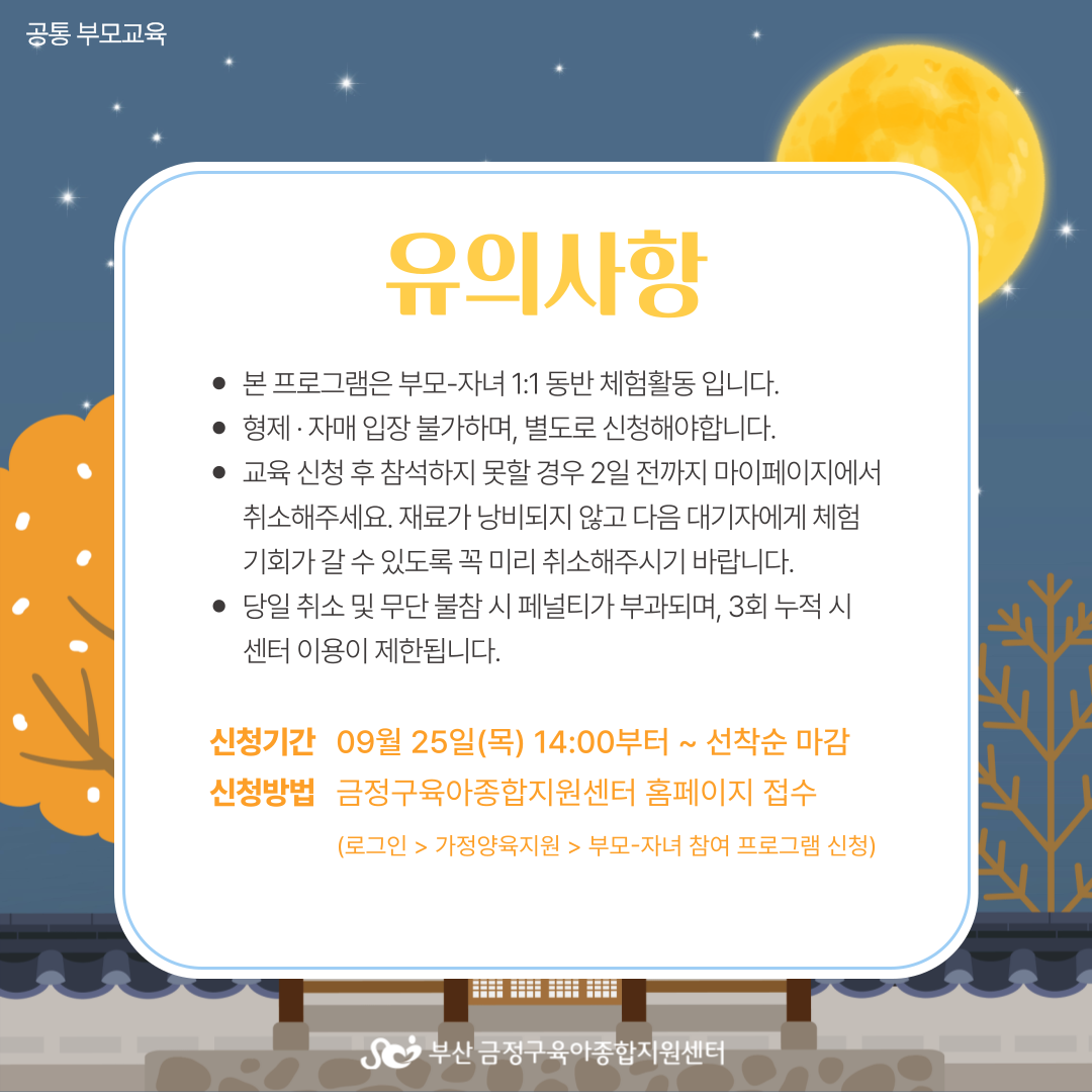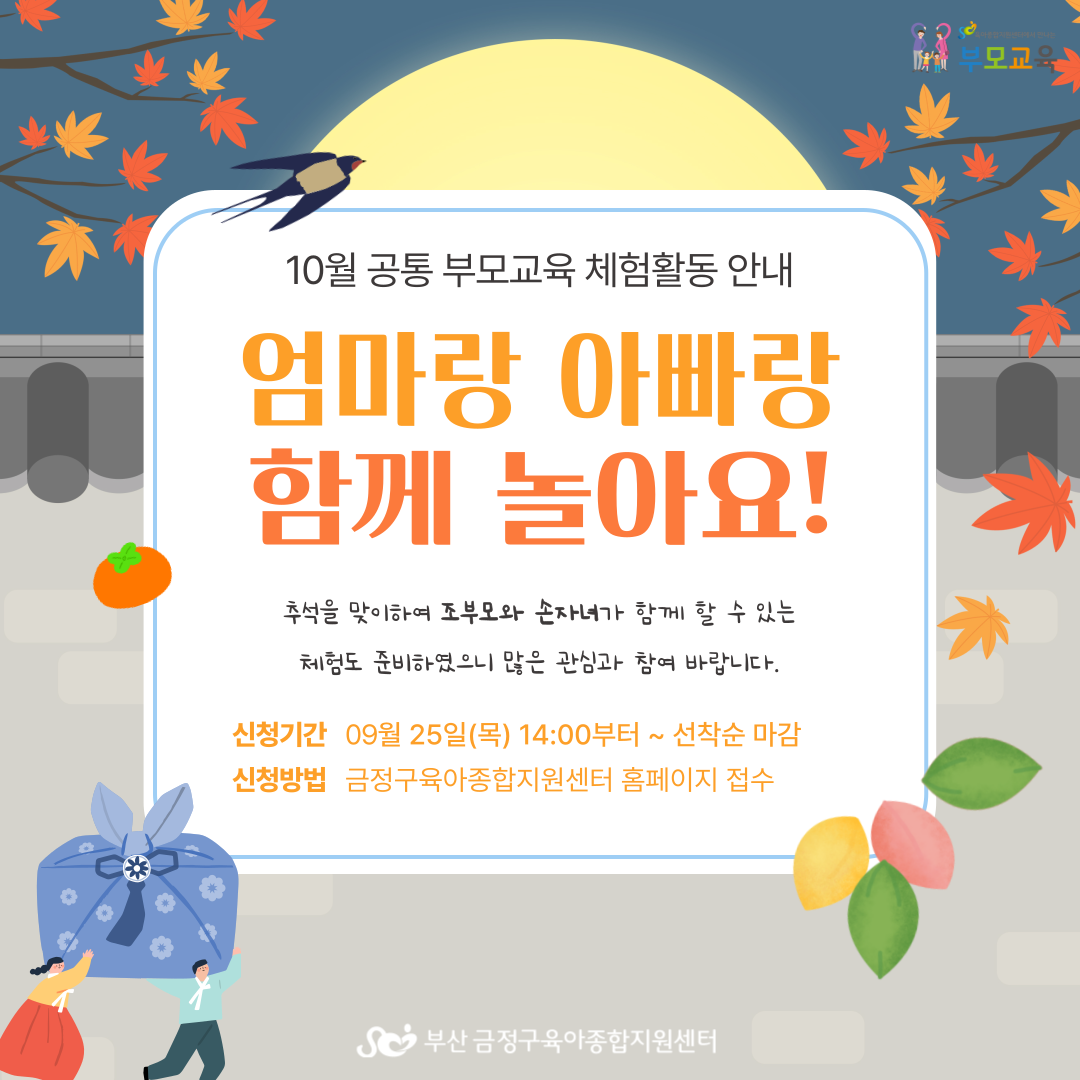 2025년 10월 공통 부모교육 「추석에도 놀면서 자란다」 신청 안내