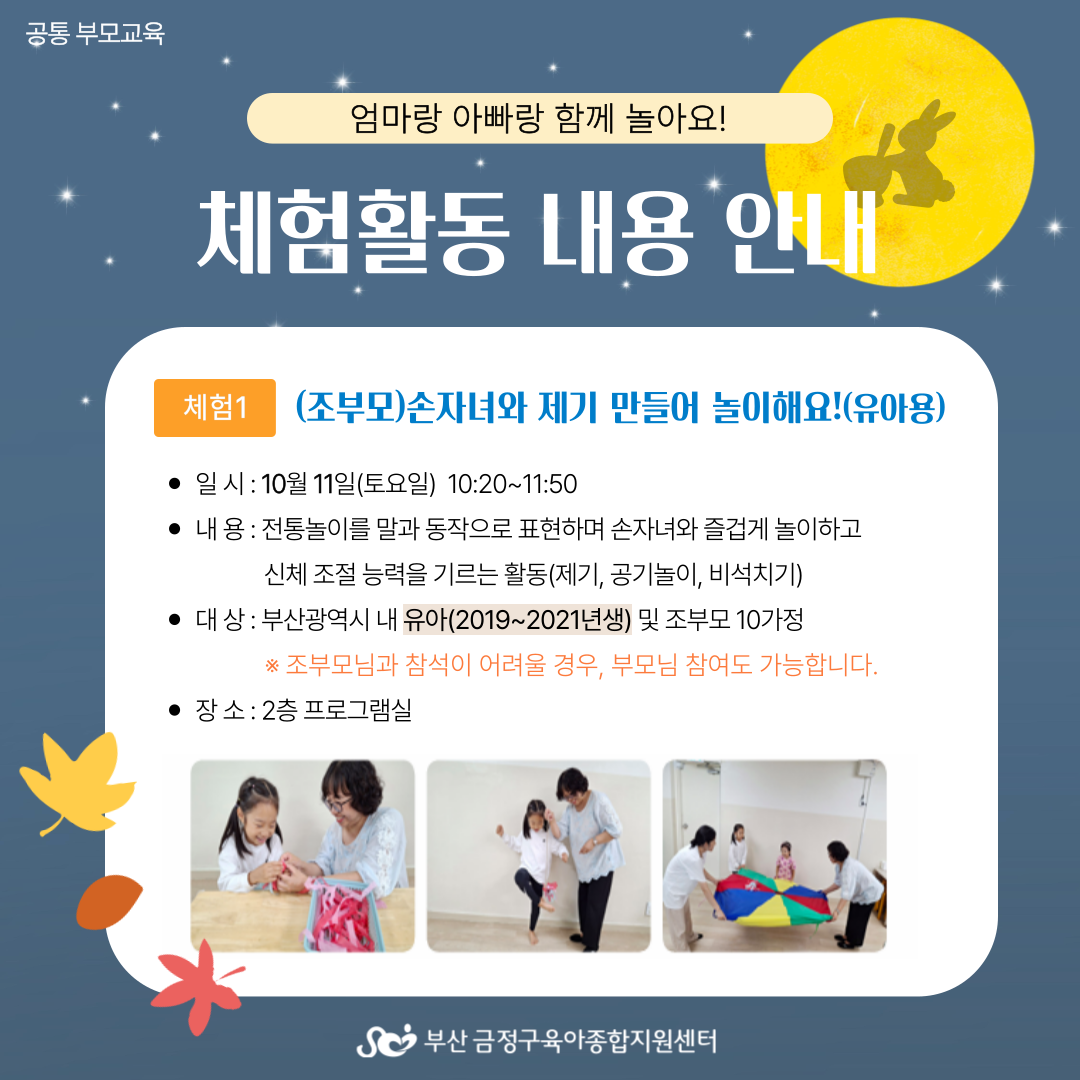 2025년 10월 공통 부모교육 「엄마랑 아빠랑 함께 놀아요!」 추석맞이 체험 안내