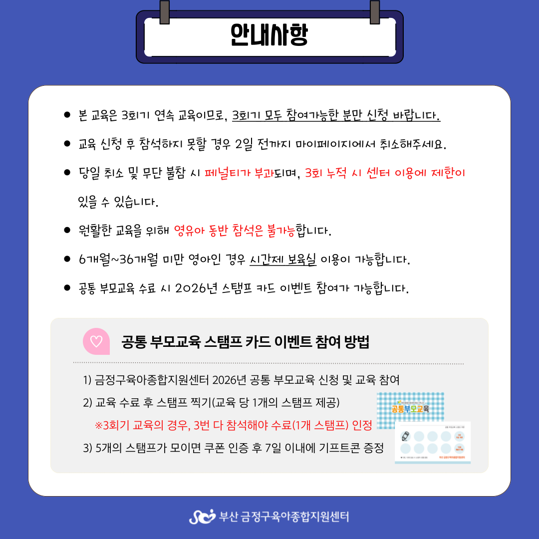 : 부산광역시 내 영유아 자녀를 둔 양육자 12명 ※1회기~3회기 모두 참석 가능한 경우에만 신청