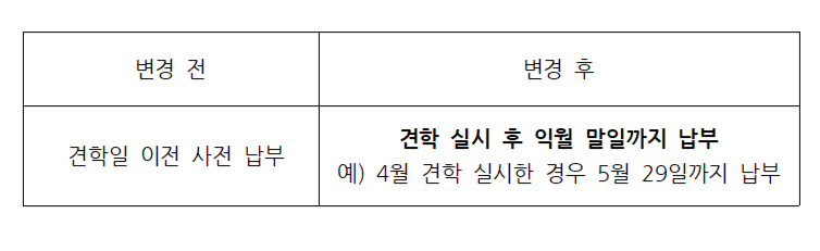 기관견학프로그램 재료비 납부 시기 조정 안내