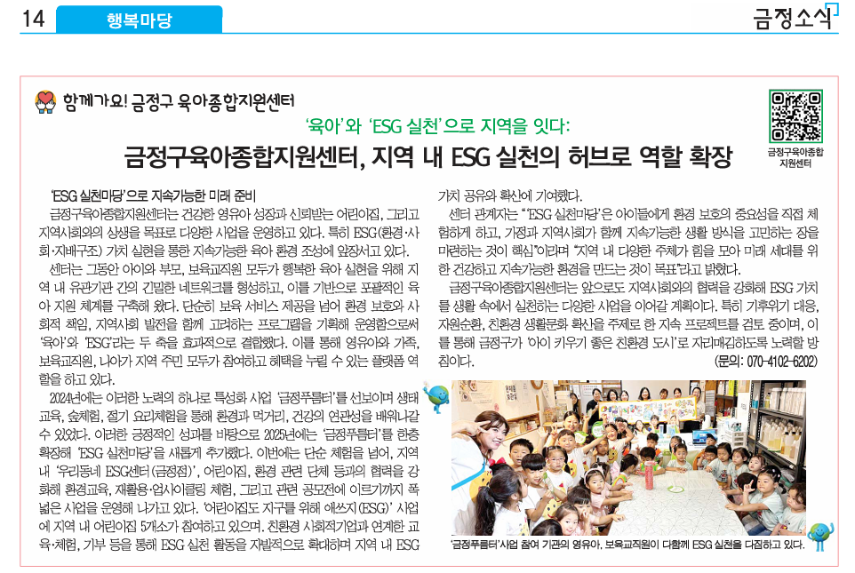 (금정소식 9월호) 금정구육아종합지원센터, 지역 내 ESG 실천의 허브로 역할 확장