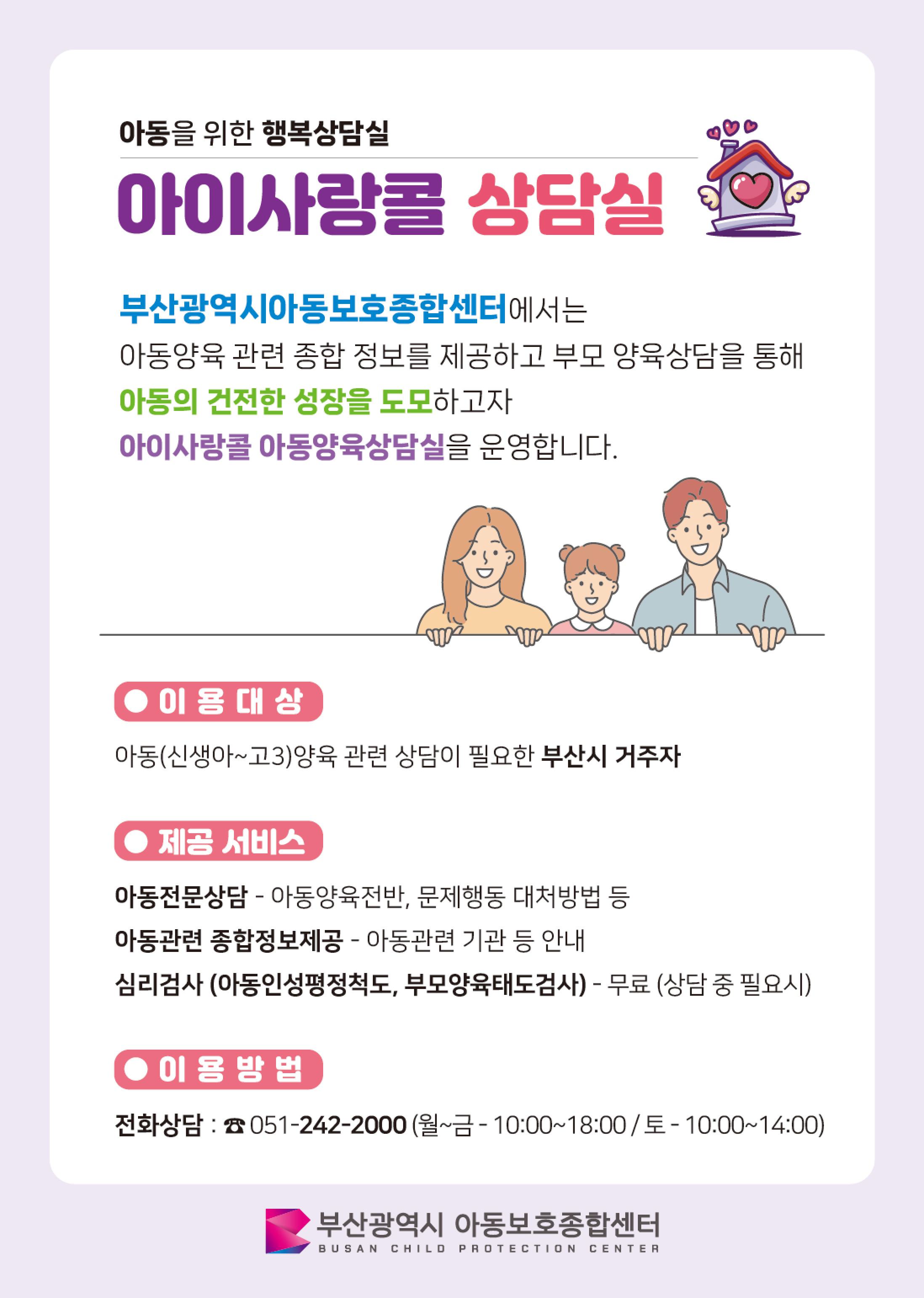 [부산광역시아동보호종합센터] 아이사랑콜 상담실 안내