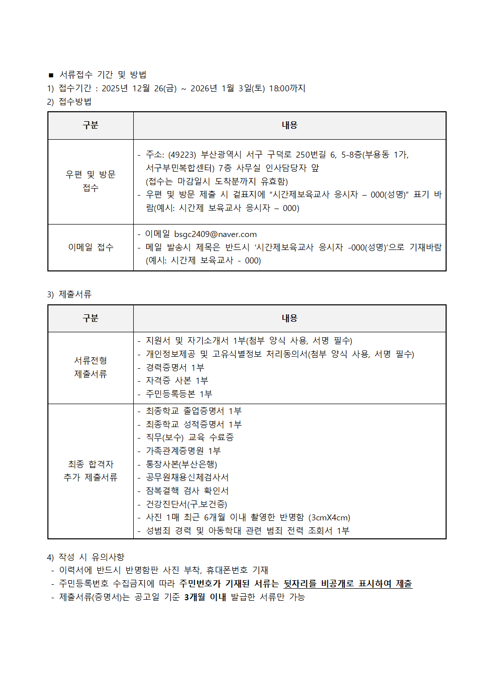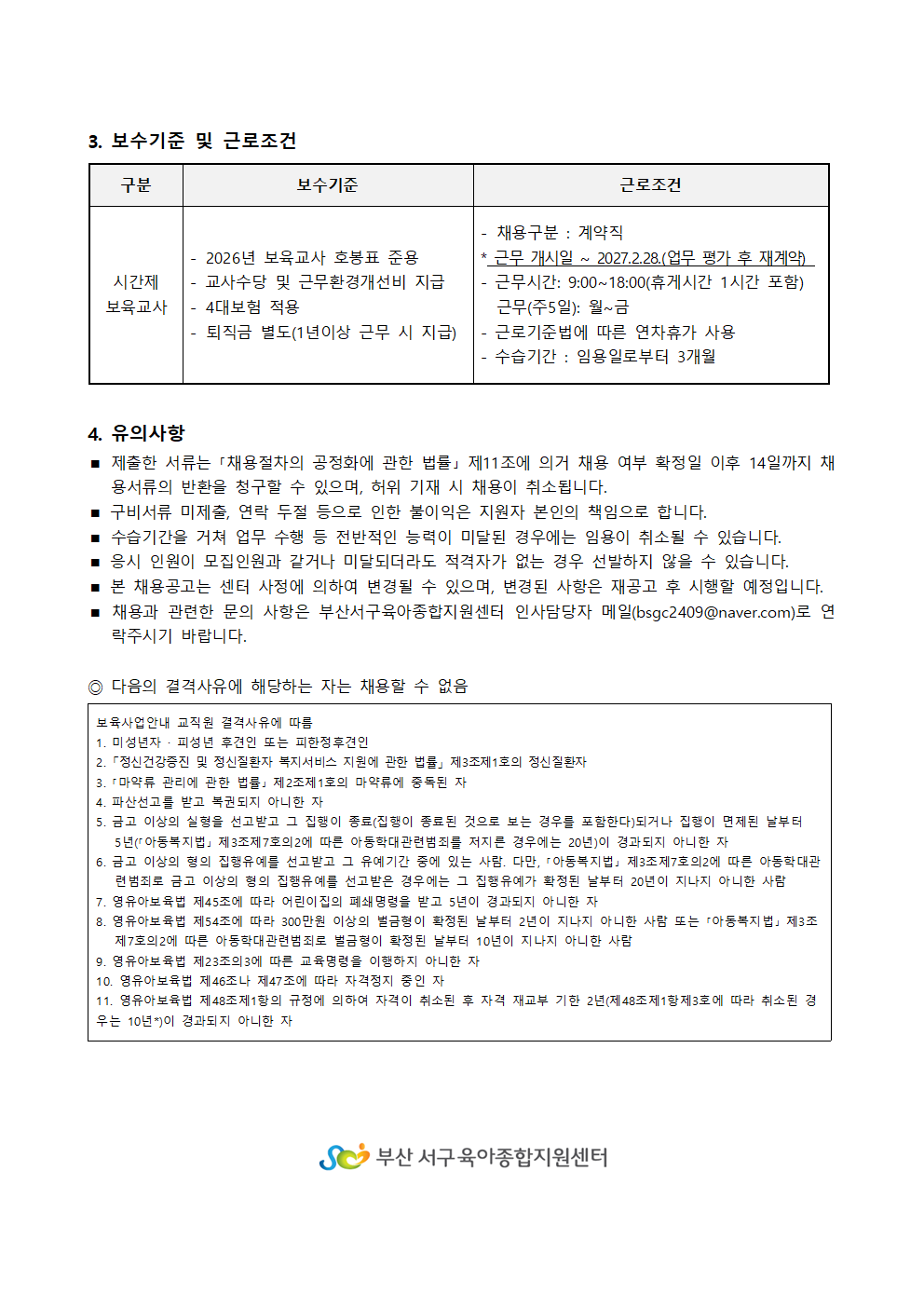 붙임1.부산서구육아종합지원센터 시간제보육교사 채용 재공고.hwp