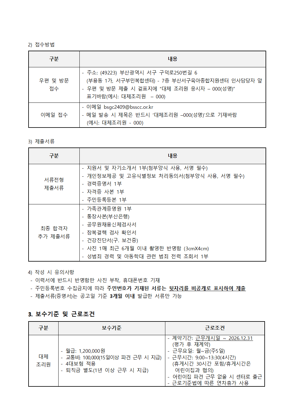 [부산서구육아종합지원센터] 대체조리원 채용 재공고