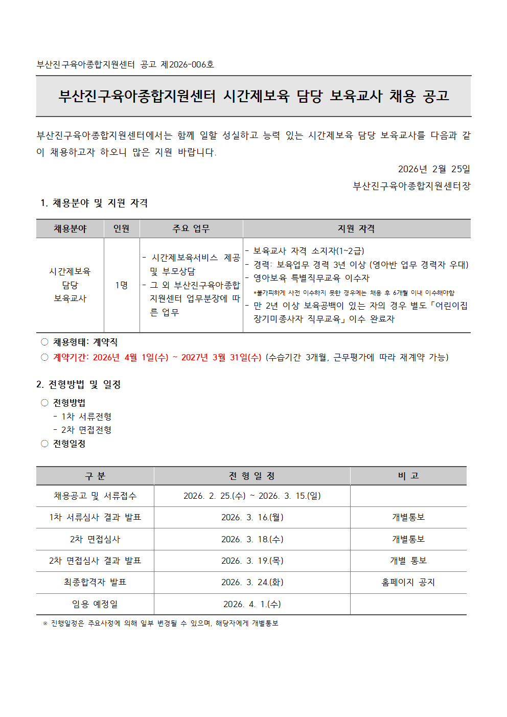 붙임 1. 부산진구육아종합지원센터 시간제보육 담당 보육교사 채용 공고.hwp