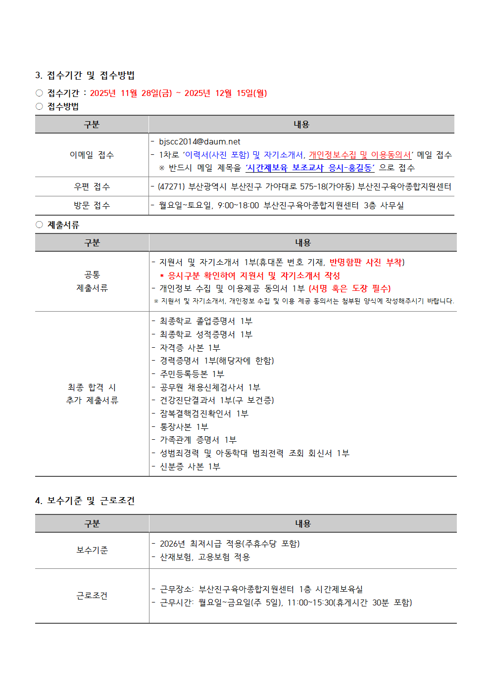 붙임 1. 부산진구육아종합지원센터 시간제보육 보조교사 채용 공고문 (1).hwp