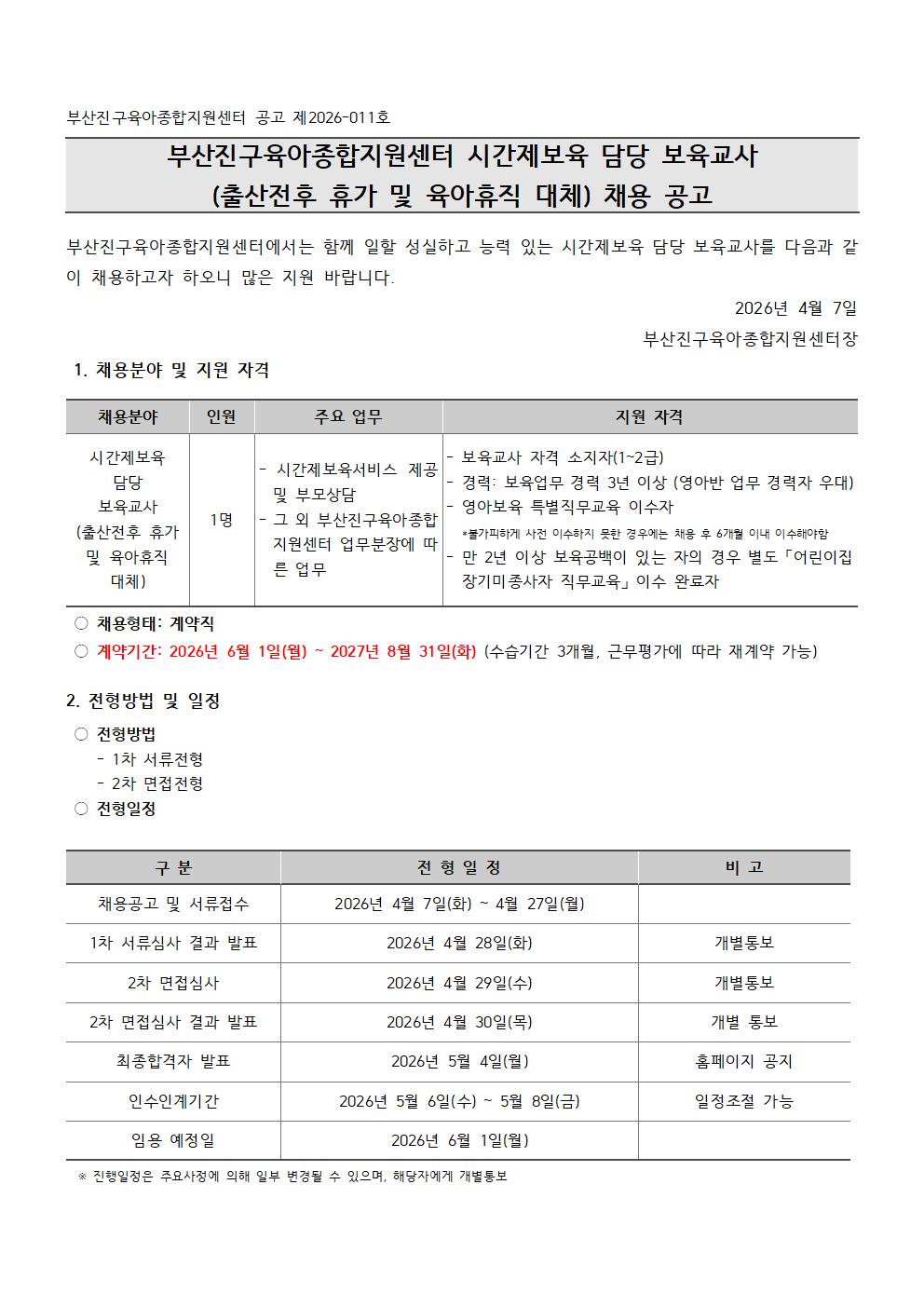 붙임 1. 부산진구육아종합지원센터 시간제보육 담당 보육교사 채용 공고 (6).hwp