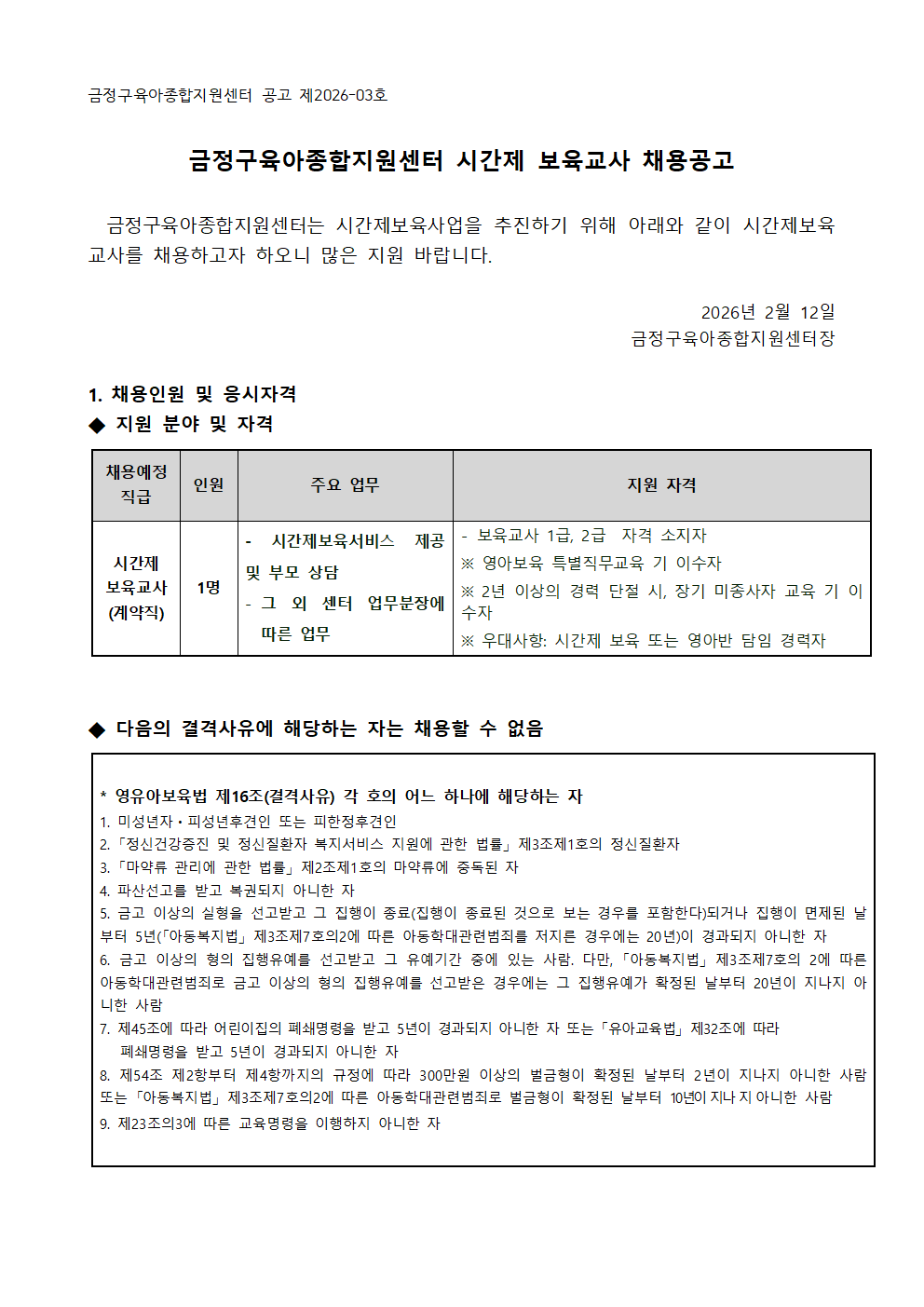 금정육종지26-017. 붙임1) 시간제보육교사 채용 공고문.hwp