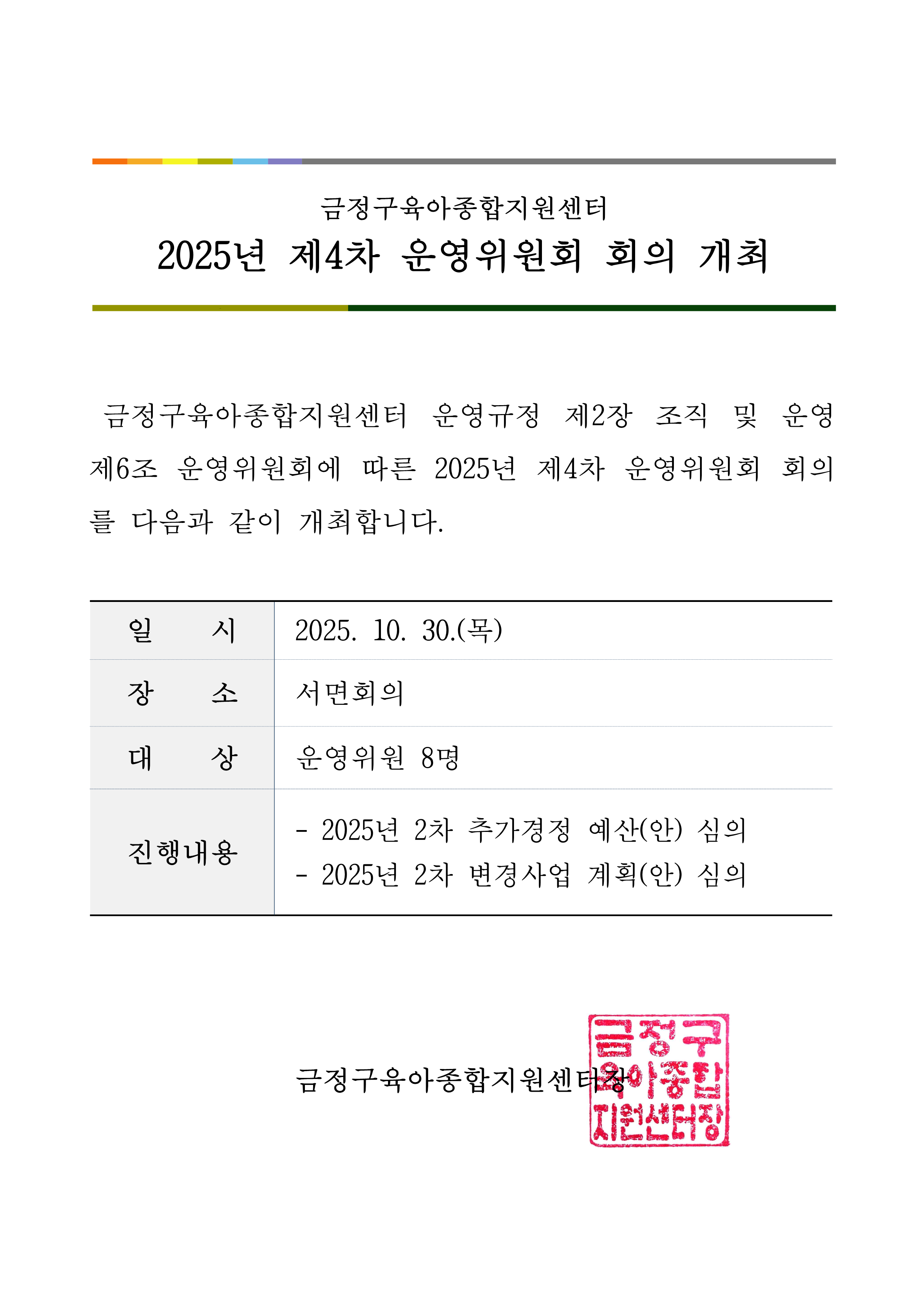 [운영위원회] 2025년 제4차 운영위원회 회의 개최 알림