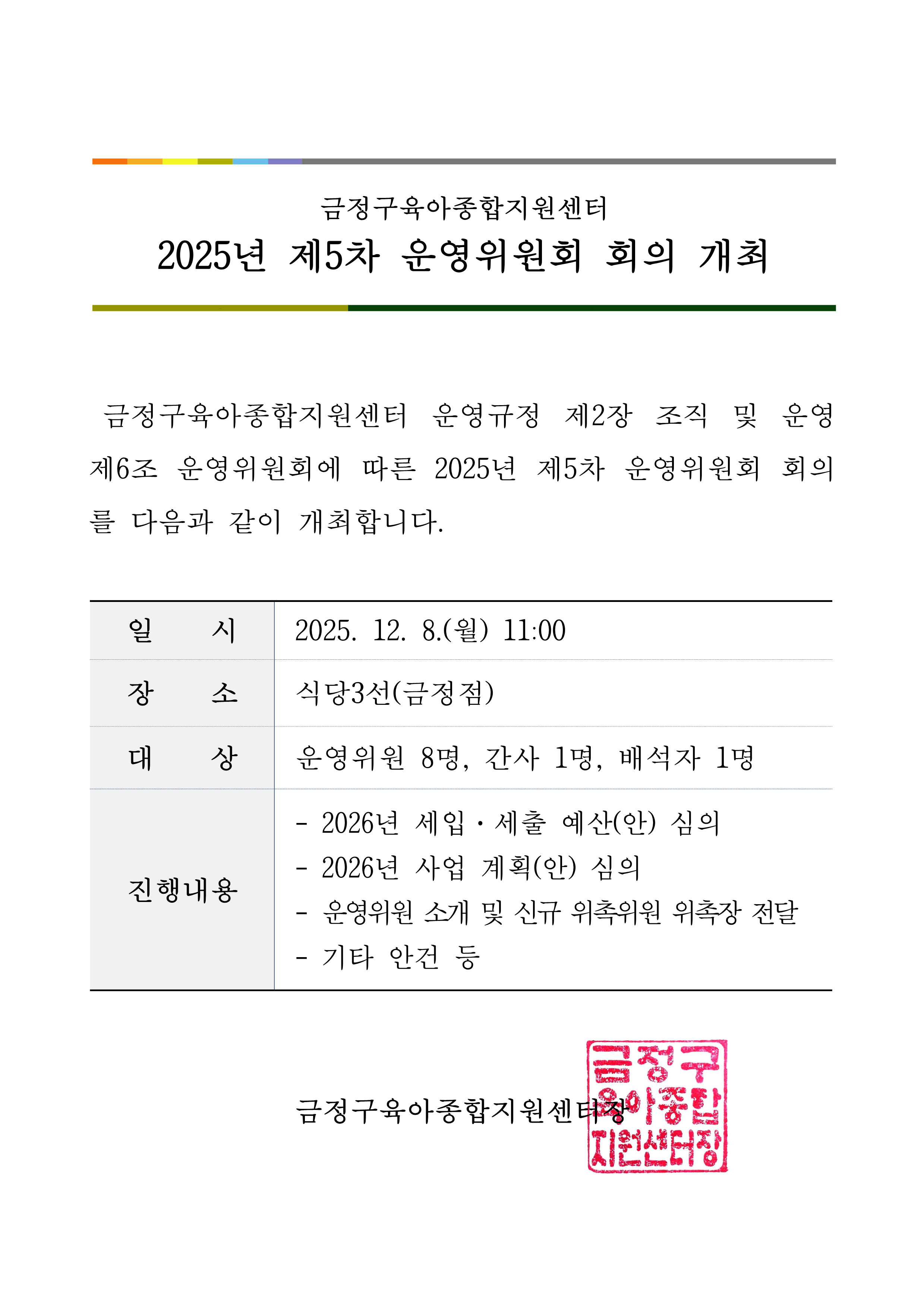 [운영위원회] 2025년 제5차 운영위원회 회의 개최 알림