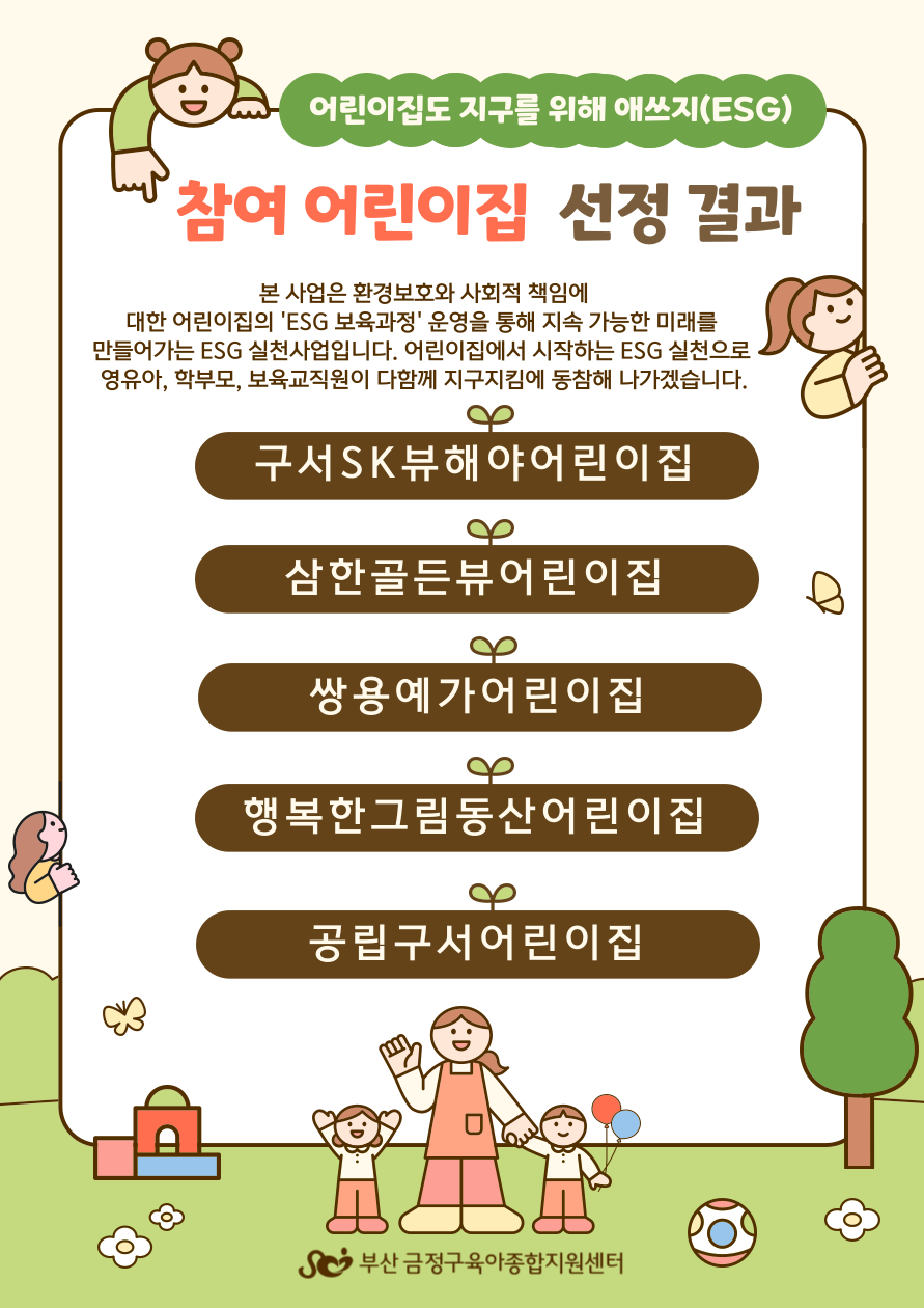 2026년 '어린이집도 지구를 위해 애쓰지(ESG)' 참여 어린이집 선정 결과