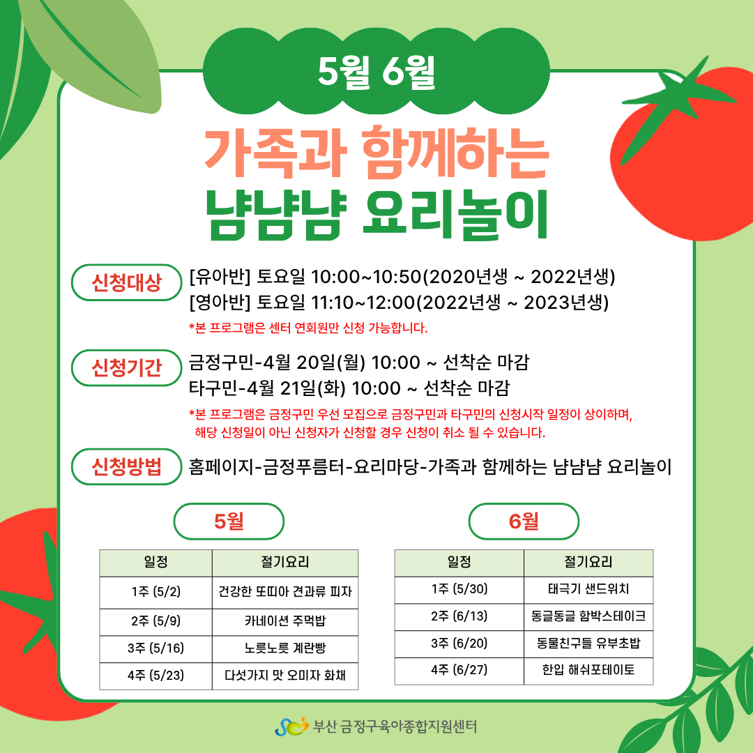 5월~6월 '가족과 함께하는 냠냠냠 요리놀이' 참여 안내