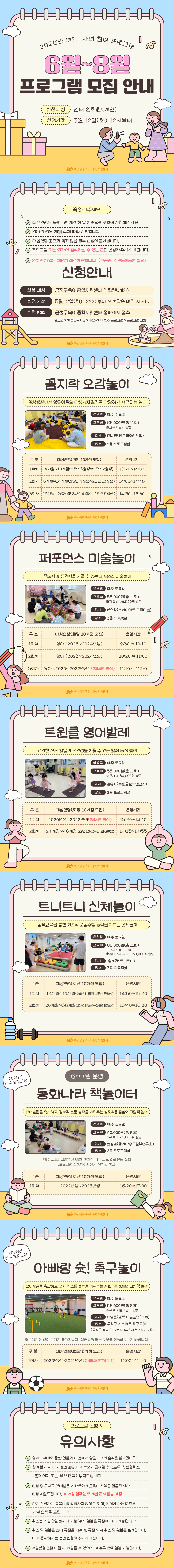 2026년 신규 프로그램(동화나라 책놀이터, 아빠랑 슛! 축구놀이)도 개설되오니 많은 관심과 참여 바랍니다!
