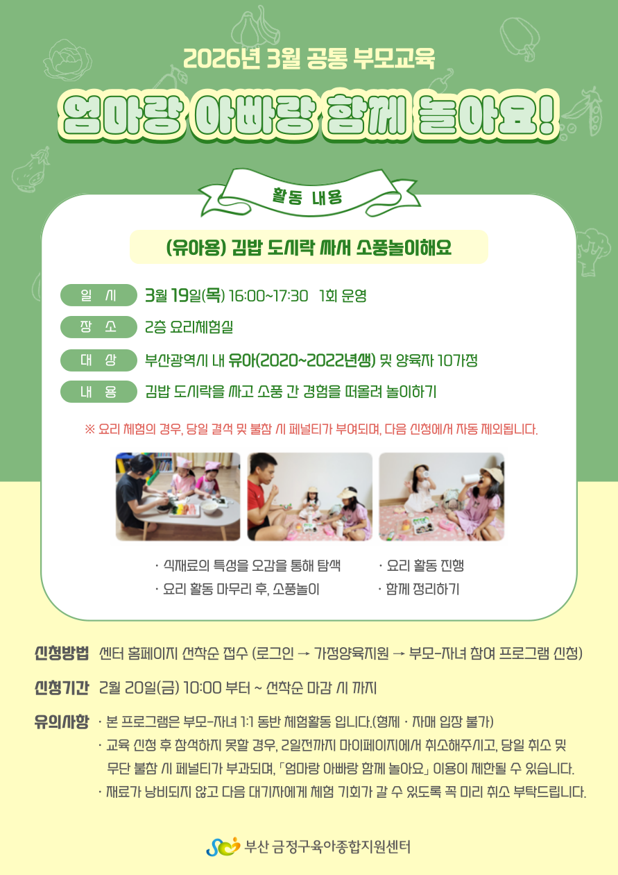 2026년 3월 공통 부모교육 「엄마랑 아빠랑 함께 놀아요」 체험활동 안내