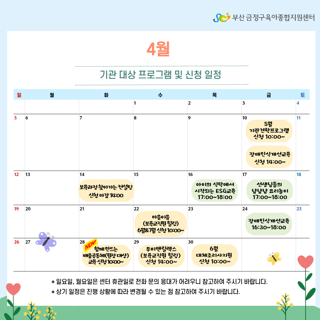 4월 기관 대상 프로그램 및 신청일정