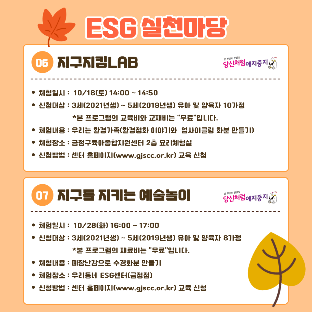 [금정푸름터(특성화사업)] 10월 금정푸름터(특성화사업) 사업 안내