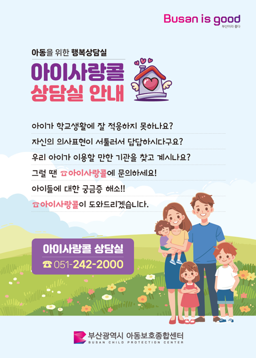 [부산광역시아동보호종합센터] 아이사랑콜 상담실 운영 안내