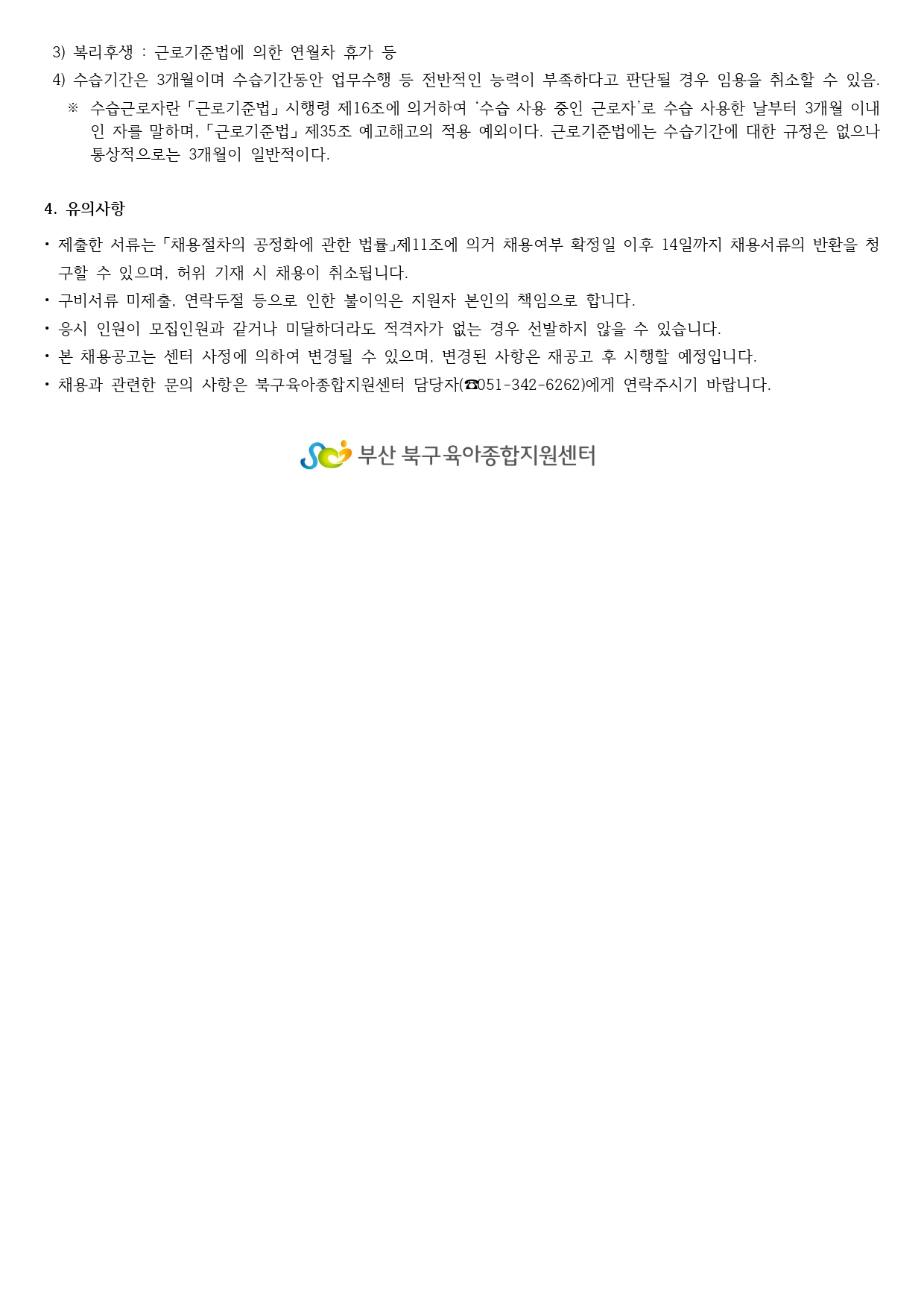 [북구육아종합지원센터] 직원 채용 공고(시간제보육교사, 운영요원)