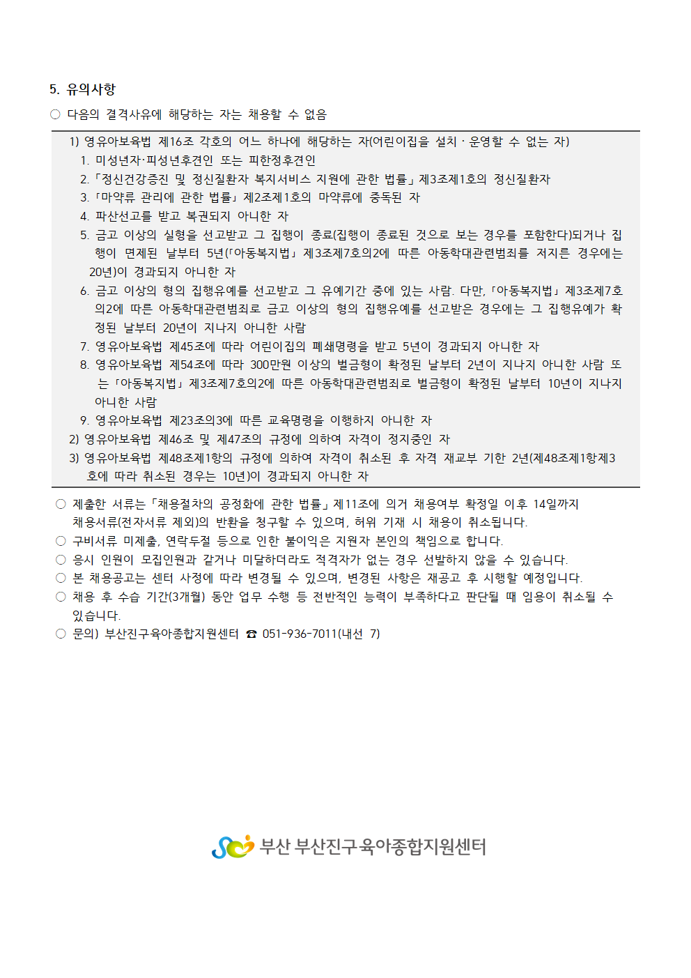 붙임 1. 부산진구육아종합지원센터 시간제보육 담당 보육교사 채용 공고.hwp
