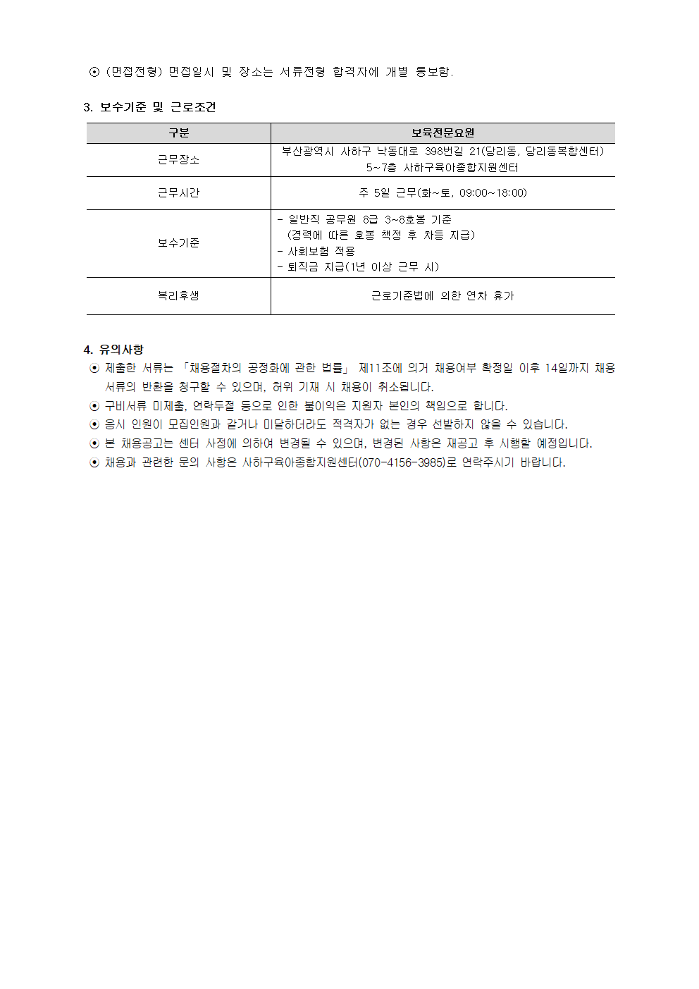 [사하구육아종합지원센터] 직원(상담전문요원, 특수교사) 채용 공고