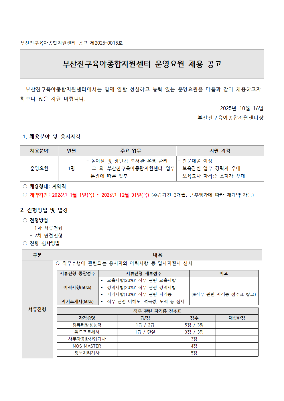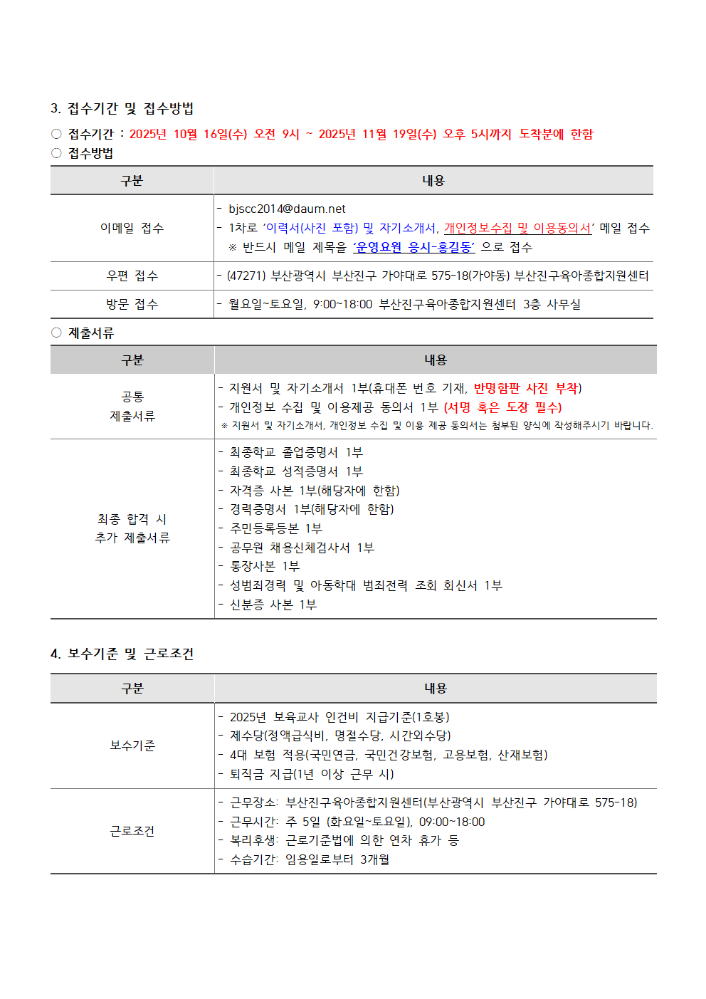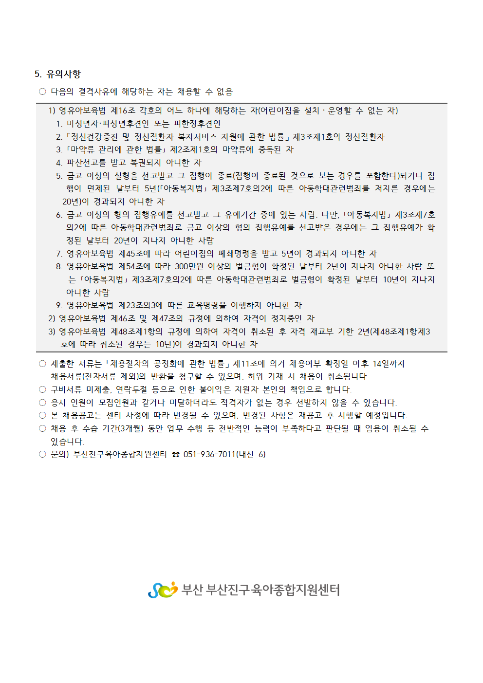[부산진구육아종합지원센터] 운영요원 채용 공고
