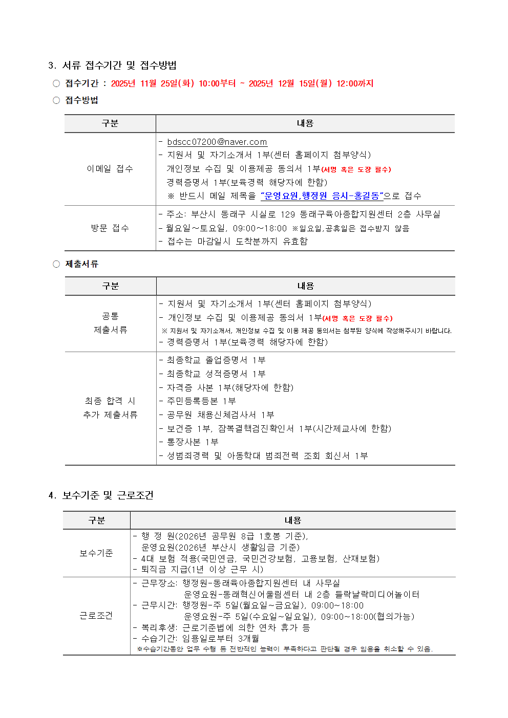 [동래구육아종합지원센터] 직원(운영요원, 행정원) 채용 공고