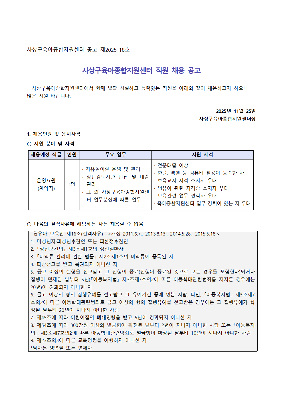 사상구육아종합지원센터 운영요원 채용 공고.hwp