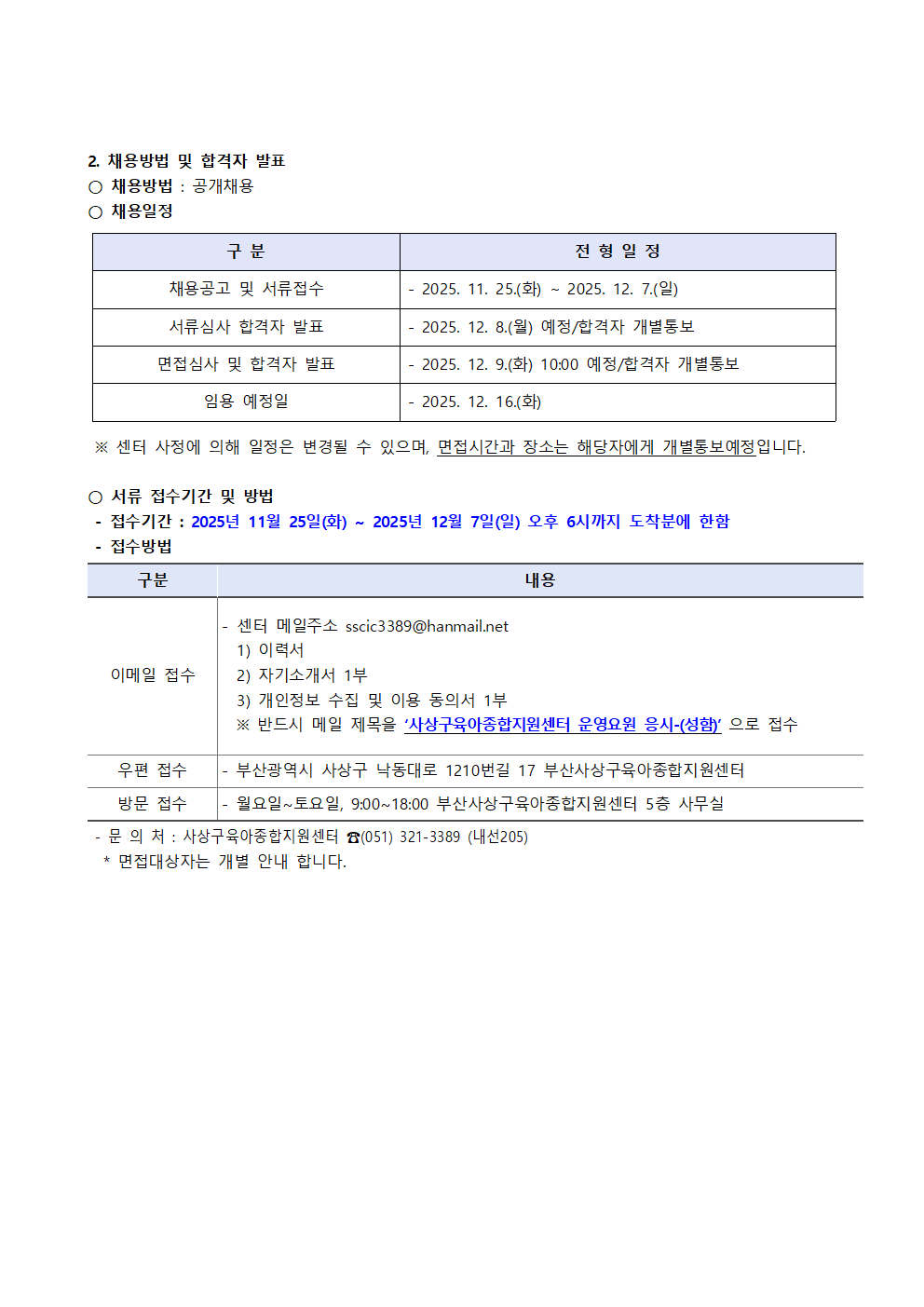[사상구육아종합지원센터] 운영요원 채용 공고