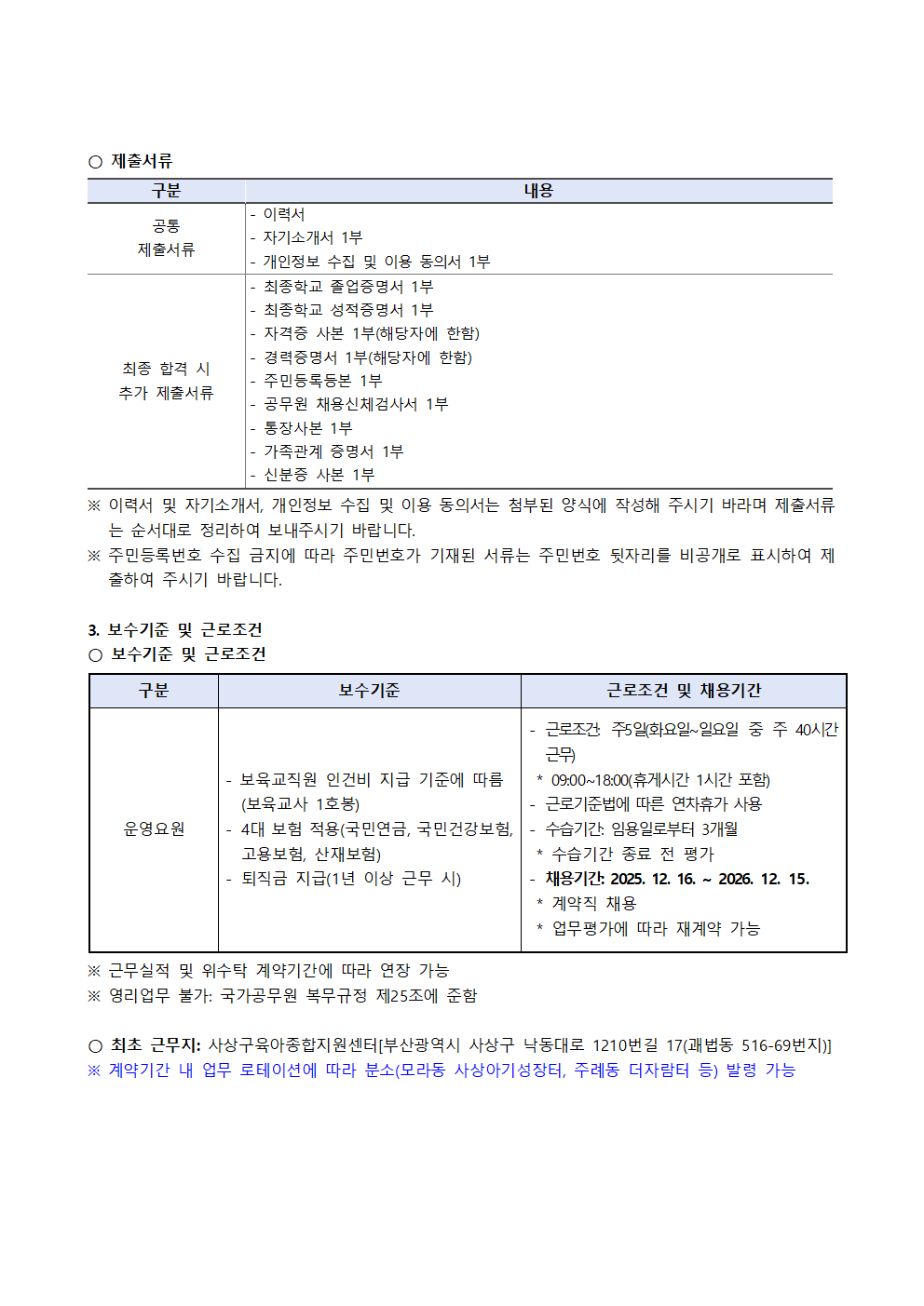 [동래구육아종합지원센터] 직원(운영요원, 행정원) 채용 공고