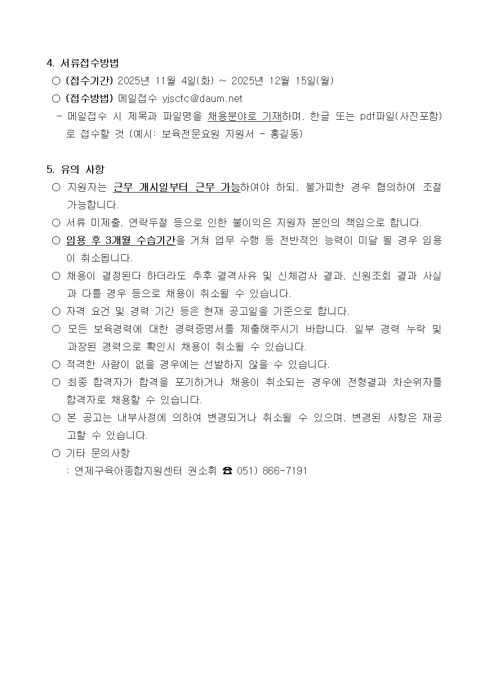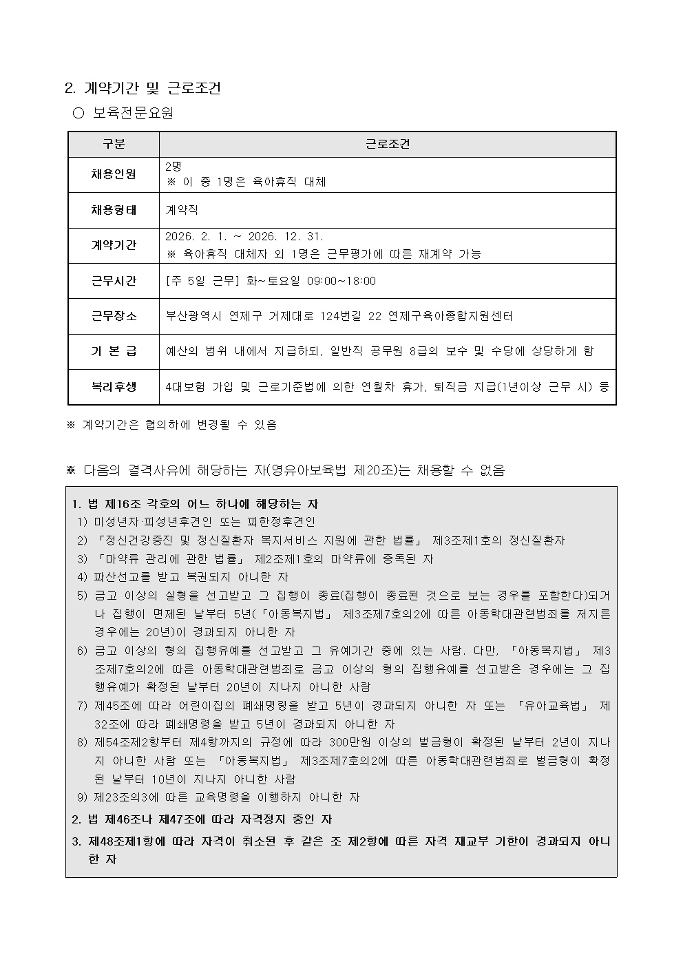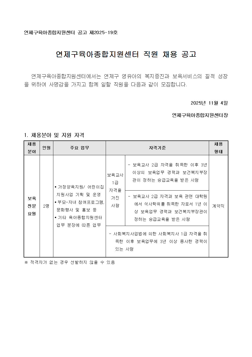 붙임1_연제구육아종합지원센터 직원(보육전문요원) 채용 공고문.hwp