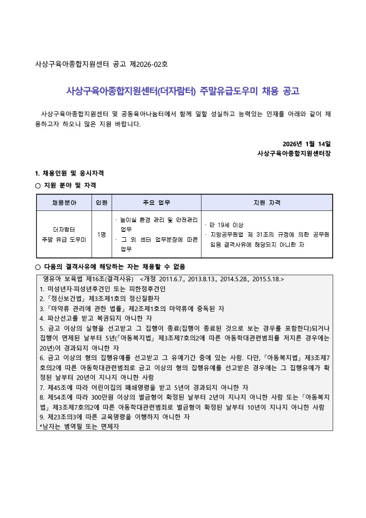 (붙임)1사상구육아종합지원센터(더자람터) 주말유급도우미 채용 공고 게시문.pdf