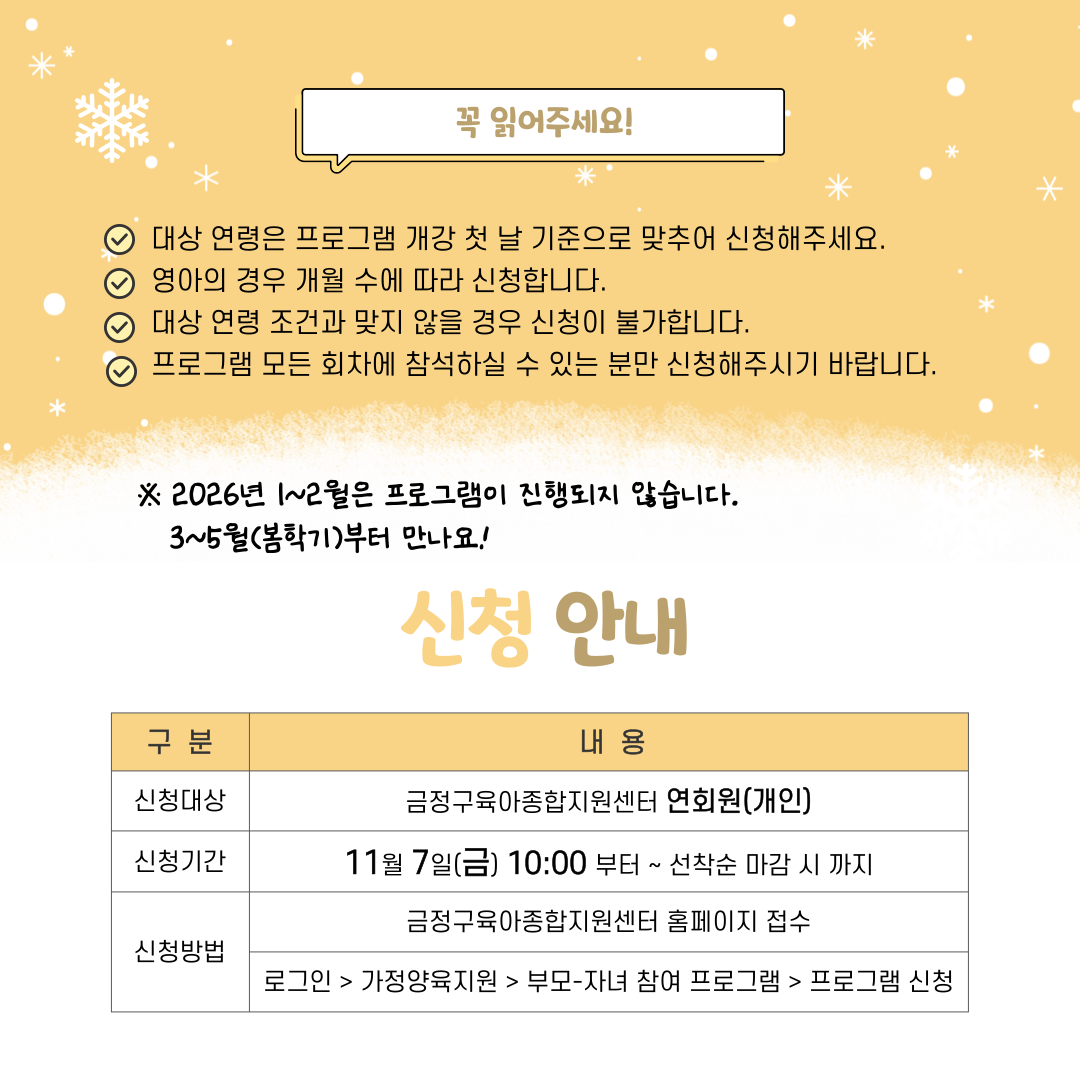 금정구육아종합지원센터 2025년 12월 부모 자녀 참여 프로그램 참여자를 모집합니다.